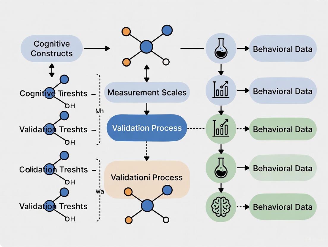 The validation of cognitive terminology measurement scales demands meticulous attention to psychometric properties throughout the development process. From initial construct definition through instrument refinement and norming, each validation phase contributes to the overall scientific integrity of the resulting tool. As cognitive assessment continues to play a crucial role in both basic research and applied drug development, adherence to robust psychometric principles remains fundamental to generating valid, reliable, and clinically meaningful data.
